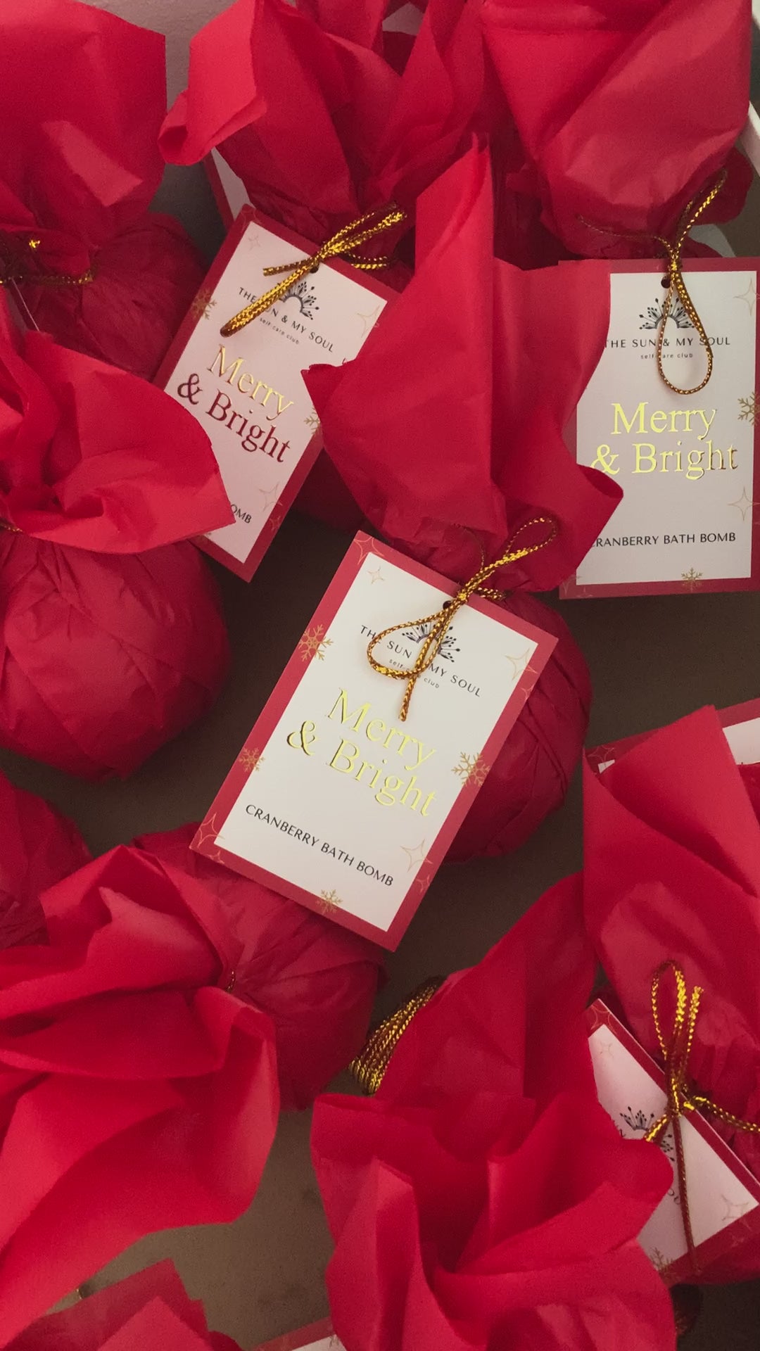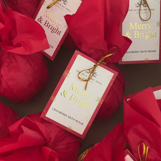 The Sun & My Soul 'Merry & Bright' Christmas Cranberry Scented Luxury Christmas Bath Bomb